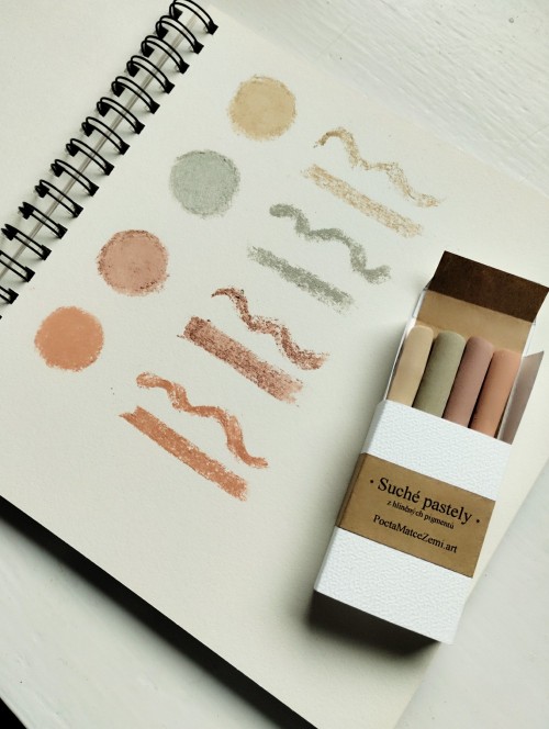 Sada obsahuje čtyři kusy pastelů v papírové krabičce o rozměrech 50 x 80 x 15 mm.