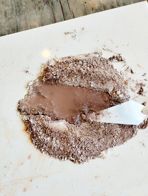 Ingredients: earthen pigments, calcium carbonate and indigo.